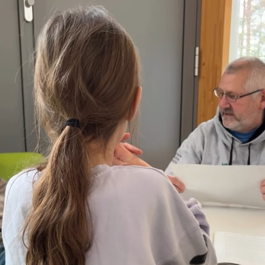 Wir gehen los. Die Kinder werden in kleinen Gruppen aus den Klassen geholt. Türen klicken, Jacken rascheln, irgendwo lacht jemand zu hell für diese Uhrzeit. Überall im Gebäude bilden sich kleine Inseln: Tische, Stühle, bunte Couchinseln. Ein Kind zieht kurz die Unterlippe ein, als ob es das schwierige Wort zwischen den Zähnen festhalten will. Eine Ehrenamtliche, ruhige Hände, helles Lächeln, tippt mit dem Finger sanft auf die Zeile, wartet, wartet, lässt. Und ich spüre, wie die Aufregung aus meinem Bauch in die Schuhe rutscht und dort stehen bleibt. Die Aufregung ist weg.
